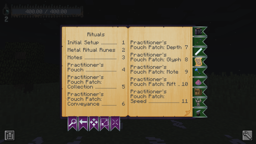 | Ritual of the Gate | Ritual of Homesteadで作られたルーンの配列が同じWaystoneへ続くポータルを作る。ディメンションをまたぐ場合はWaystoneがあるディメンションに紐づけられWorld Charmが必要。Rune of Markingを投げ込むと消える。 |